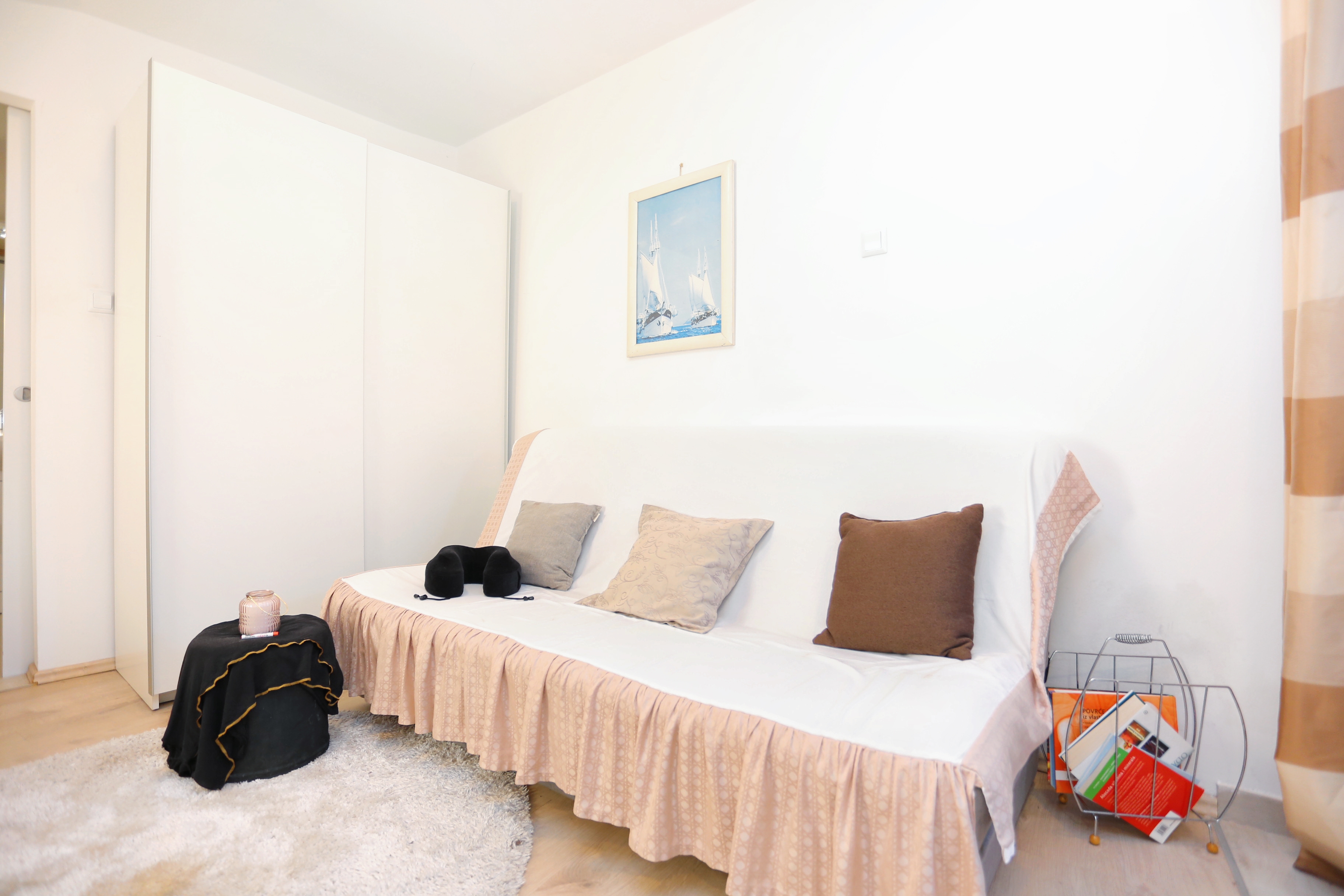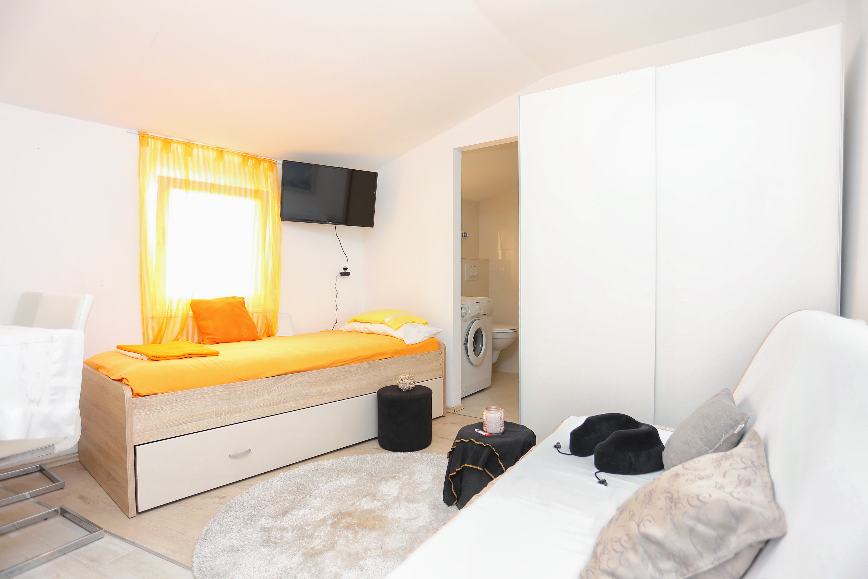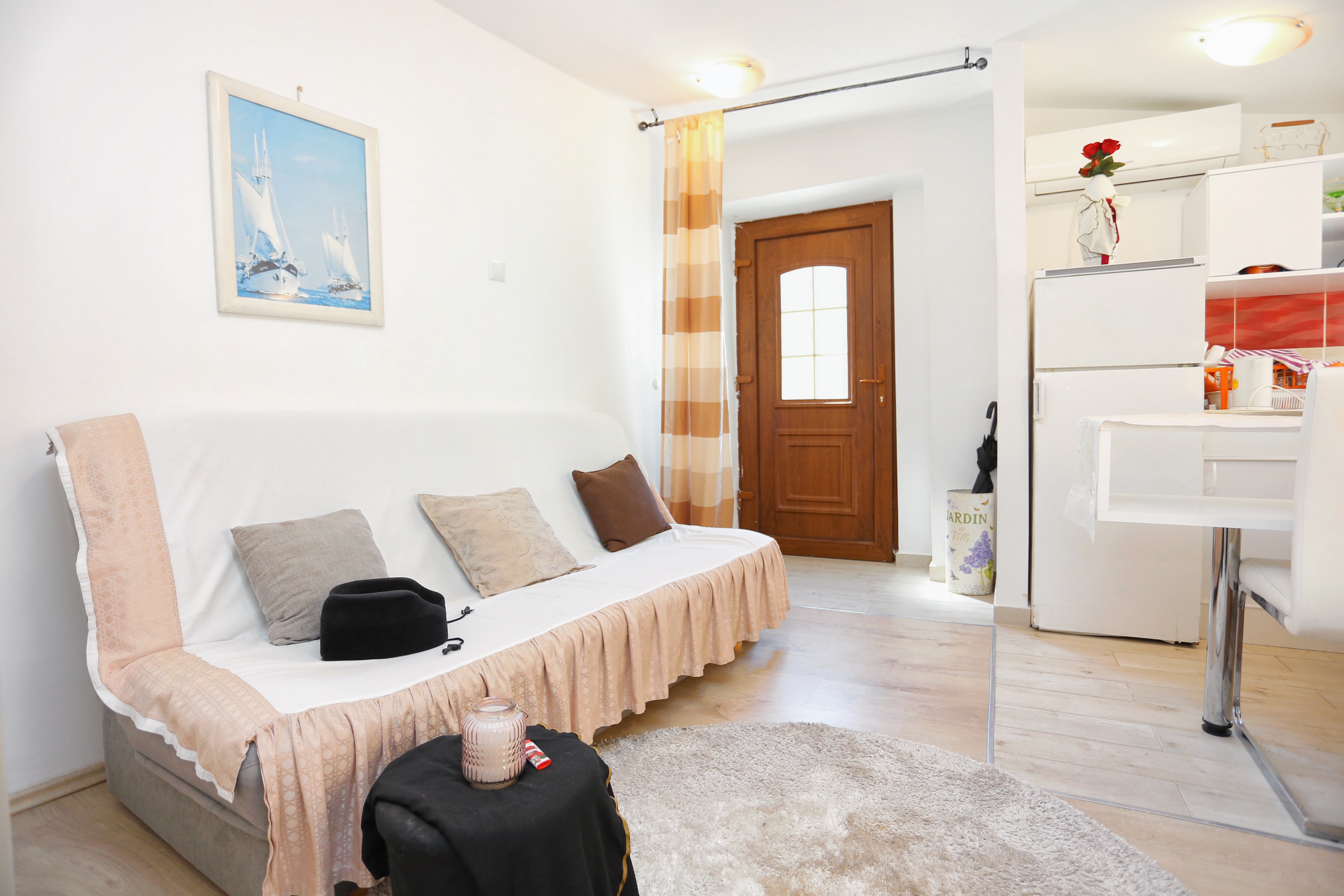 Studio flat can accommodate 3 guests. Beds are situated in 1 sleeping rooms, within 22m2. Food can be prepared using barbecue which is shared with other guests too. There is no balcony or terrace in the reserved accommodation unit. INCLUDED IN THE PRICE: tourist tax, final cleaning, air-conditioning, internet, iron, ironing board, hairdryer. OBLIGATORY ADDITIONAL COSTS: short stay fee (surcharge depending on a number of booked nights: 30% - 1, 20% - 2, 10% - 3). The availability of additional services for your chosen dates of stay, as well as their prices (if none are listed) must be checked ahead of time. Any additional services not shown in the price calculation are payable directly to the property owner and only if used by the visitor. Discounts to the base price: free day 14=13 (for reservations of 14 or more days you get one free day for the stay until 31122026).