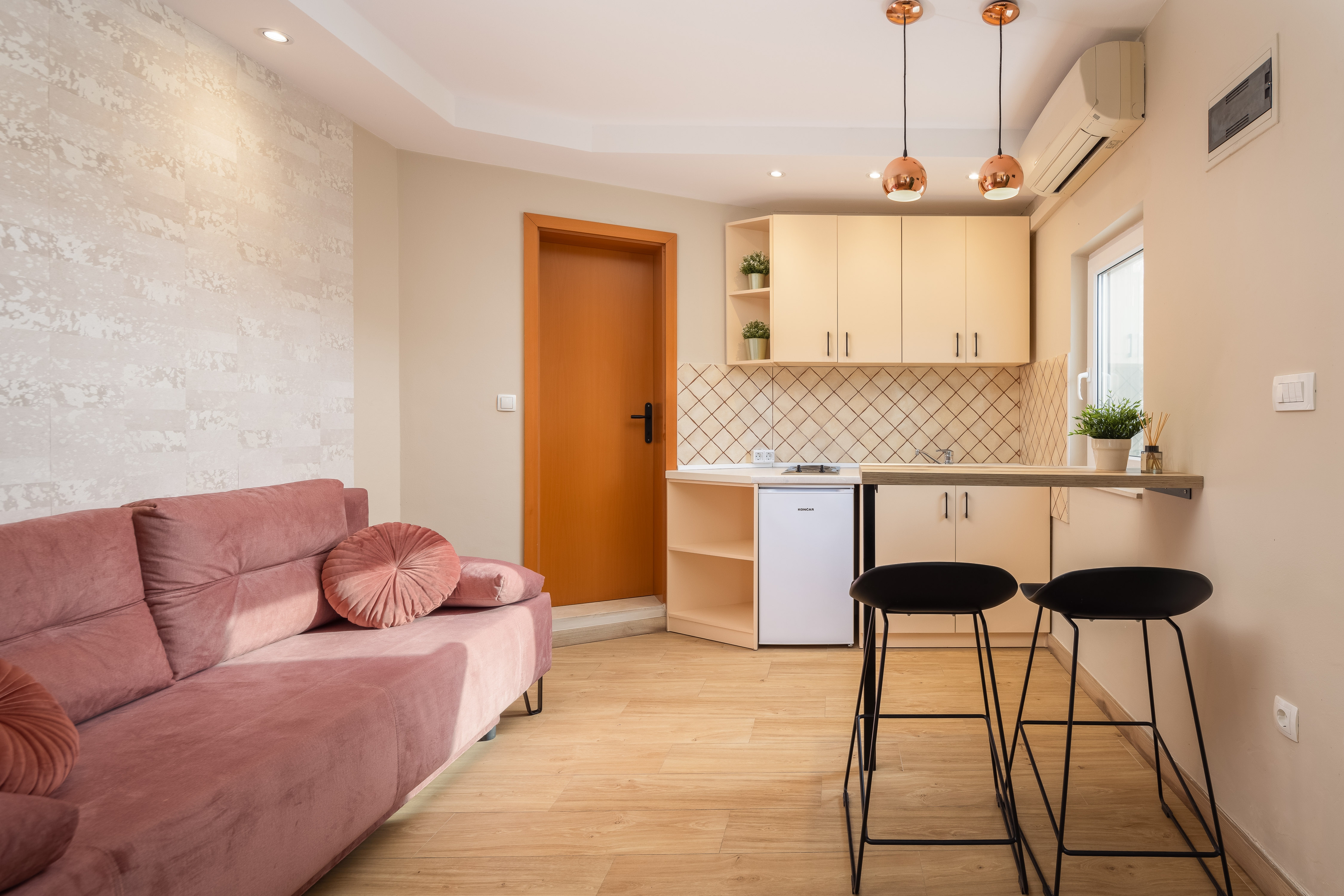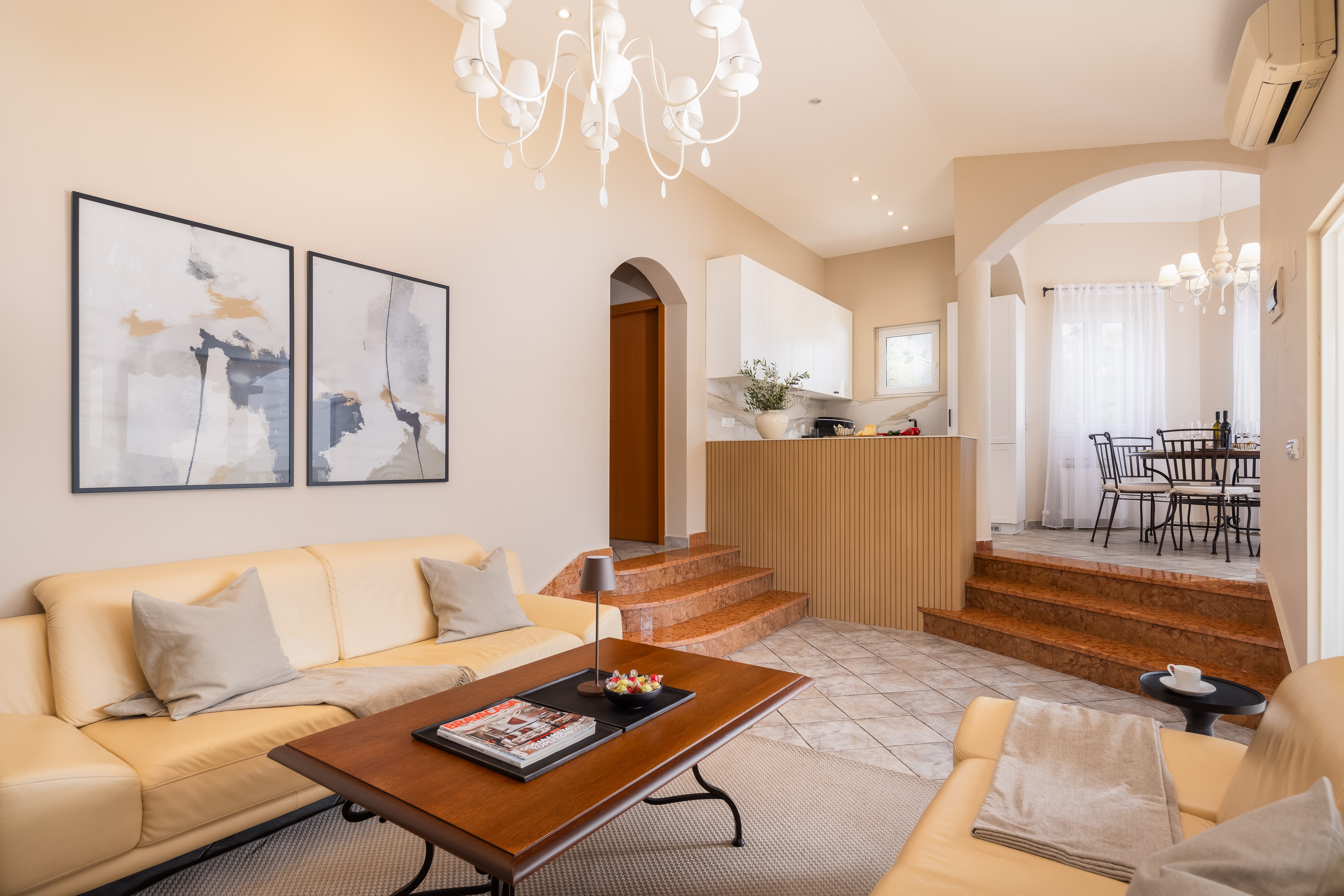 House can accommodate 7 guests. Beds are situated in 3 sleeping rooms, but also in the living room, within 106m2. Guests can use a private terrace to enjoy the warm summer evenings. The house offers the sea view. For full enjoyment and relaxation there is a private barbecue for this accommodation guests only. During stay, there is a private pool for relaxation and pleasure. This accommodation unit welcomes pets at no additional costs. For the booked accommodation unit the deposit is paid directly to the owner upon check-in (deposit amount is displayed on the website) INCLUDED IN THE PRICE: tourist tax, final cleaning, air-conditioning, central heating, pool, parking, garage, internet, pets, baby cot, iron, ironing board, hairdryer, sunchairs. OBLIGATORY ADDITIONAL COSTS: deposit (€300.00 one-time payment). OPTIONAL ADDITIONAL COSTS: boat mooring (€20.00 per night), additional bed (€30.00 per night). The availability of additional services for your chosen dates of stay, as well as their prices (if none are listed) must be checked ahead of time. Any additional services not shown in the price calculation are payable directly to the property owner and only if used by the visitor.