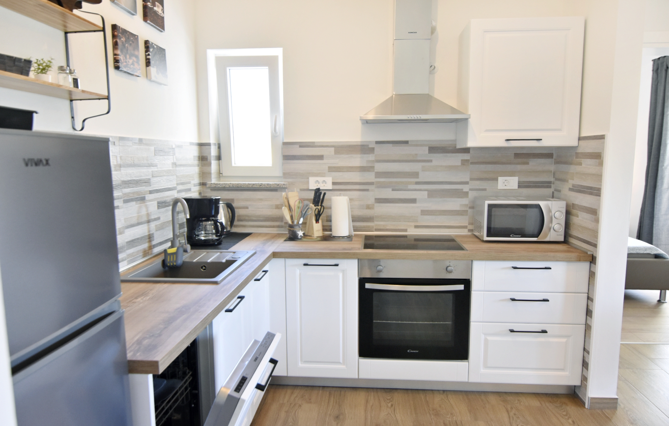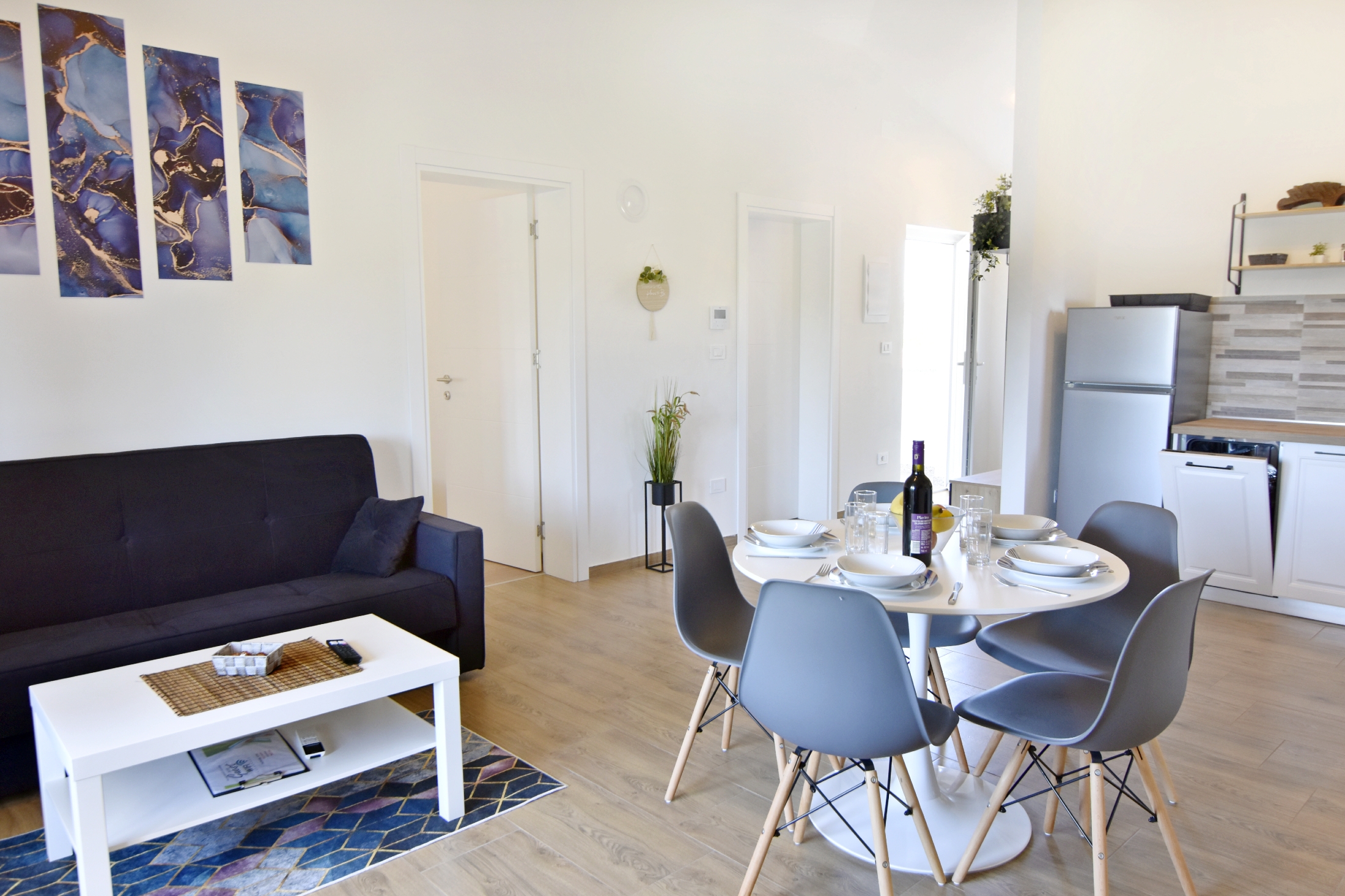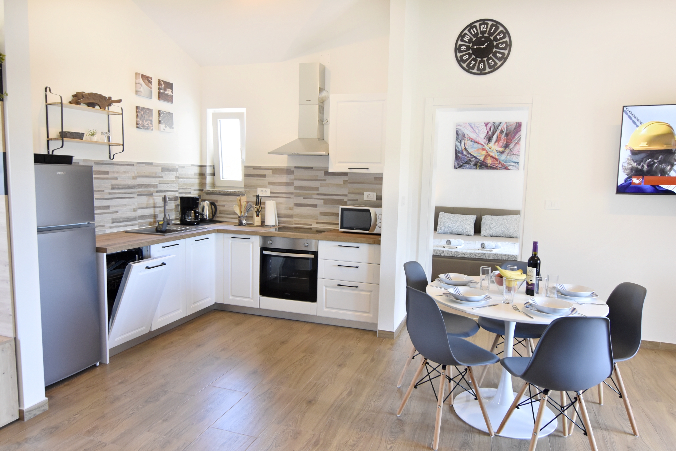 Apartment can accommodate 5 guests. Beds are situated in 2 sleeping rooms, but also in the living room, within 52m2. Guests can use a private terrace to enjoy the warm summer evenings. Food can be prepared using barbecue which is shared with other guests too. Shared pool is on disposal during stay. INCLUDED IN THE PRICE: tourist tax, final cleaning, air-conditioning, pool, parking, internet, hairdryer. The availability of additional services for your chosen dates of stay, as well as their prices (if none are listed) must be checked ahead of time. Any additional services not shown in the price calculation are payable directly to the property owner and only if used by the visitor.