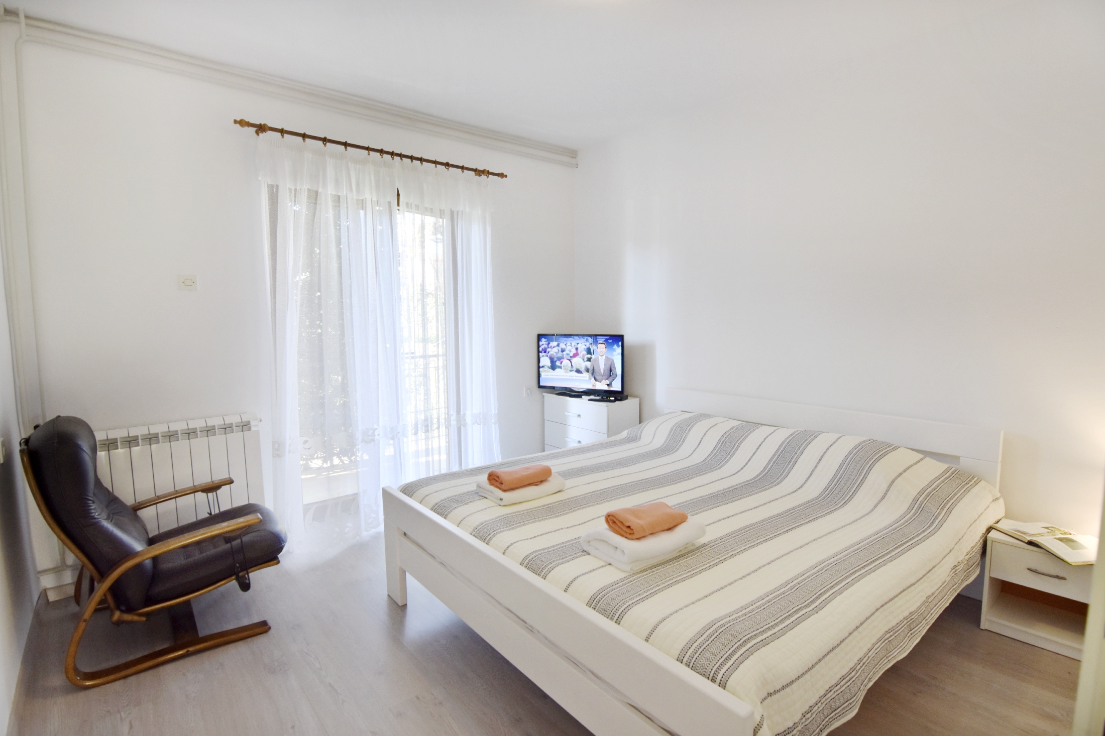Apartment can accommodate 4 guests. Beds are situated in 2 sleeping rooms, within 55m2. Guests can use a private terrace to enjoy the warm summer evenings. Food can be prepared using barbecue which is shared with other guests too. INCLUDED IN THE PRICE: tourist tax, final cleaning, air-conditioning, parking, internet. The availability of additional services for your chosen dates of stay, as well as their prices (if none are listed) must be checked ahead of time. Any additional services not shown in the price calculation are payable directly to the property owner and only if used by the visitor.