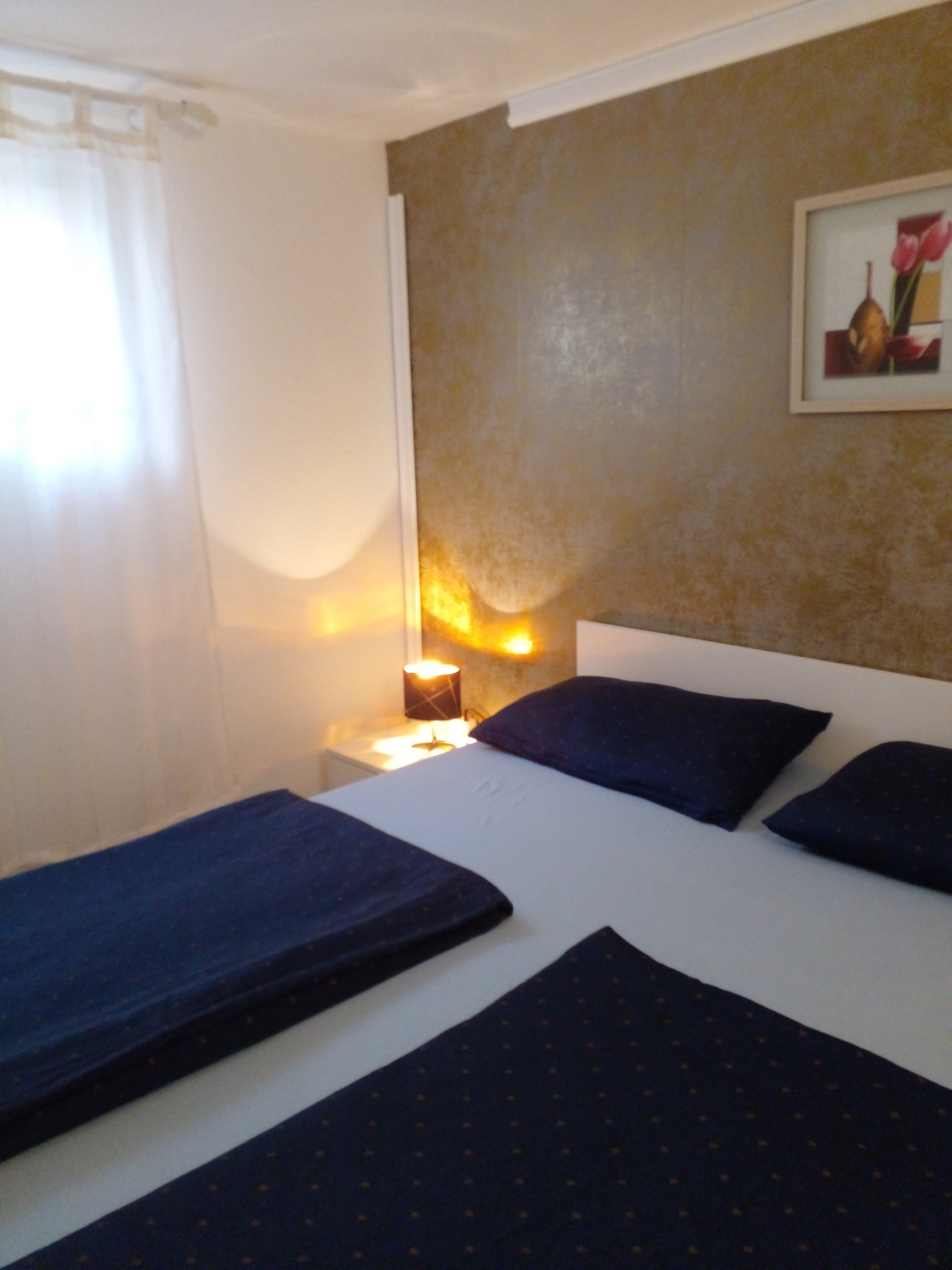 Apartment can accommodate 4 guests. Beds are situated in 1 sleeping rooms, but also in the living room, within 36m2. Guests can use a private terrace to enjoy the warm summer evenings. Food can be prepared using barbecue which is shared with other guests too. This accommodation unit welcomes pets at an additional charge. INCLUDED IN THE PRICE: tourist tax, final cleaning, air-conditioning, parking, internet, baby cot, iron, ironing board, hairdryer. OBLIGATORY ADDITIONAL COSTS: short stay fee (surcharge depending on a number of booked nights: 30% - 1, 20% - 2, 10% - 3). OPTIONAL ADDITIONAL COSTS: pets (€5.00 per night). The availability of additional services for your chosen dates of stay, as well as their prices (if none are listed) must be checked ahead of time. Any additional services not shown in the price calculation are payable directly to the property owner and only if used by the visitor. Discounts to the base price: free day 28=25 (for stays of 28 days or more, we give you 3 days free of charge for the stay until 31122026).