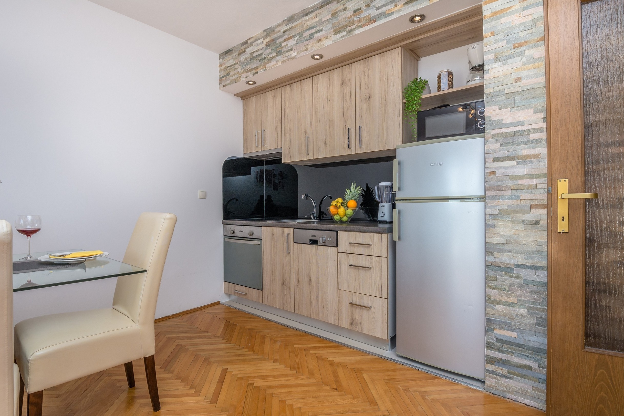 Apartment can accommodate 6 guests. Beds are situated in 3 sleeping rooms, but also in the living room, within 67m2. Guests can use a private terrace to enjoy the warm summer evenings. Food can be prepared using barbecue which is shared with other guests too. INCLUDED IN THE PRICE: tourist tax, final cleaning, air-conditioning, parking, internet, baby cot, iron, ironing board, hairdryer. OBLIGATORY ADDITIONAL COSTS: short stay fee (surcharge depending on a number of booked nights: 30% - 1, 20% - 2, 10% - 3). The availability of additional services for your chosen dates of stay, as well as their prices (if none are listed) must be checked ahead of time. Any additional services not shown in the price calculation are payable directly to the property owner and only if used by the visitor.