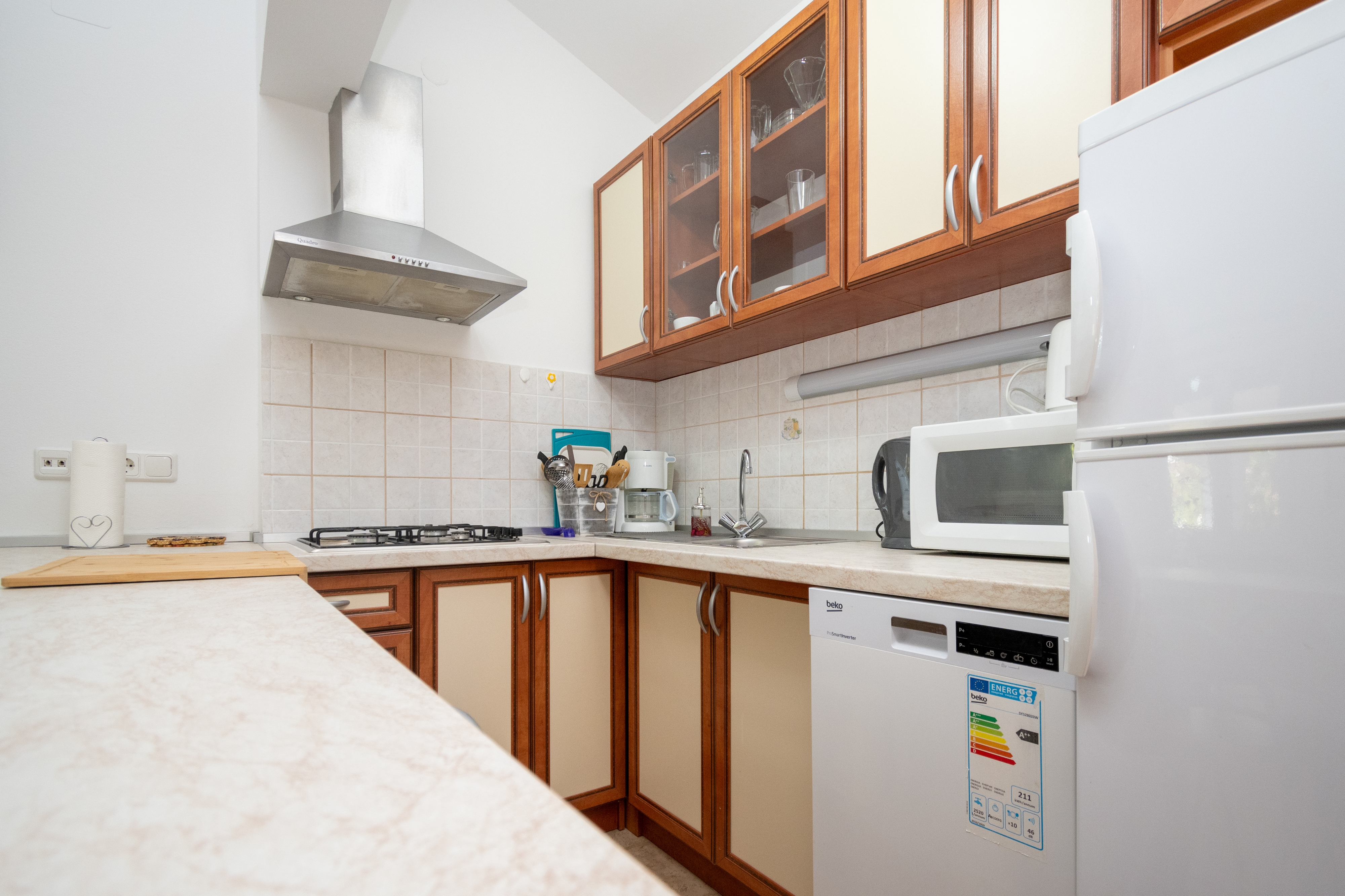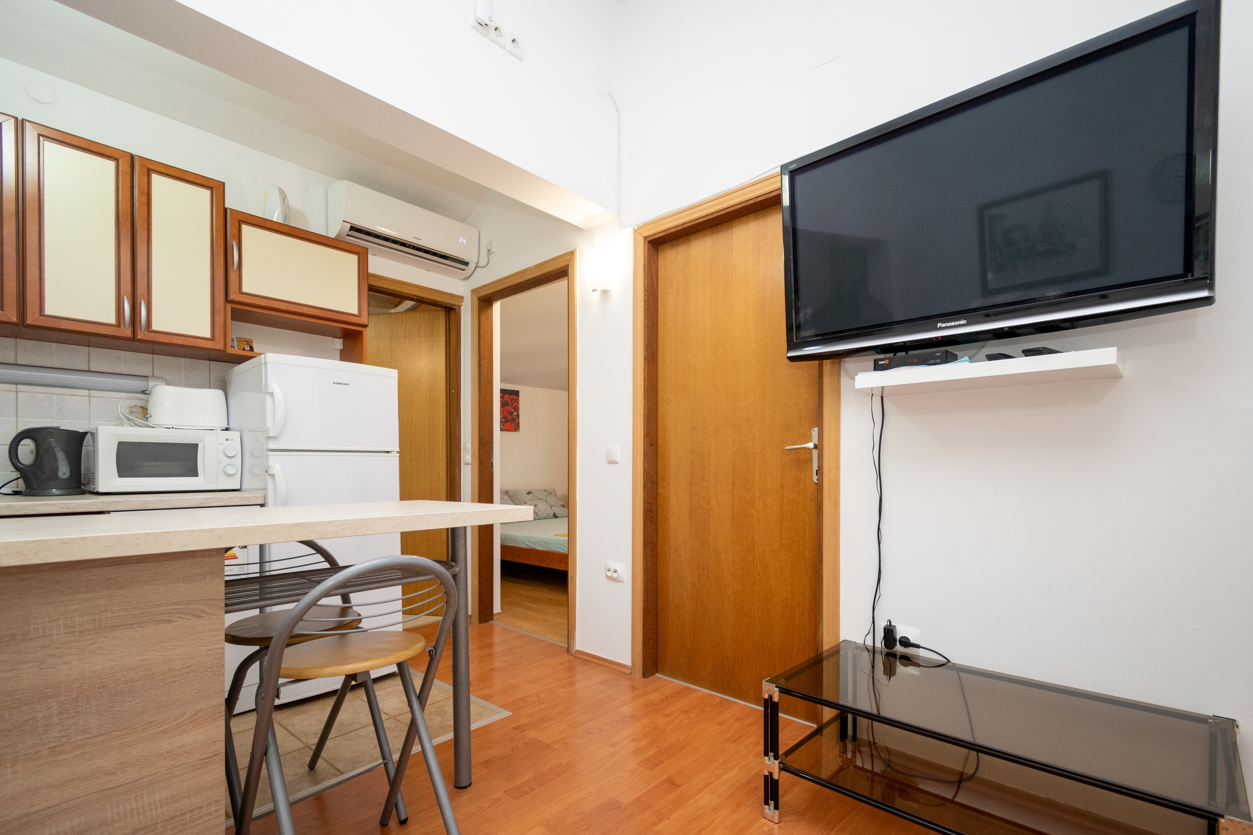 Apartment can accommodate 6 guests. Beds are situated in 2 sleeping rooms, but also in the living room, within 41m2. Guests can use a private terrace to enjoy the warm summer evenings. INCLUDED IN THE PRICE: tourist tax, final cleaning, air-conditioning, parking, internet, baby cot, additional bed, iron, ironing board, hairdryer. OBLIGATORY ADDITIONAL COSTS: short stay fee (surcharge depending on a number of booked nights: 30% - 1, 20% - 2, 10% - 3). The availability of additional services for your chosen dates of stay, as well as their prices (if none are listed) must be checked ahead of time. Any additional services not shown in the price calculation are payable directly to the property owner and only if used by the visitor.