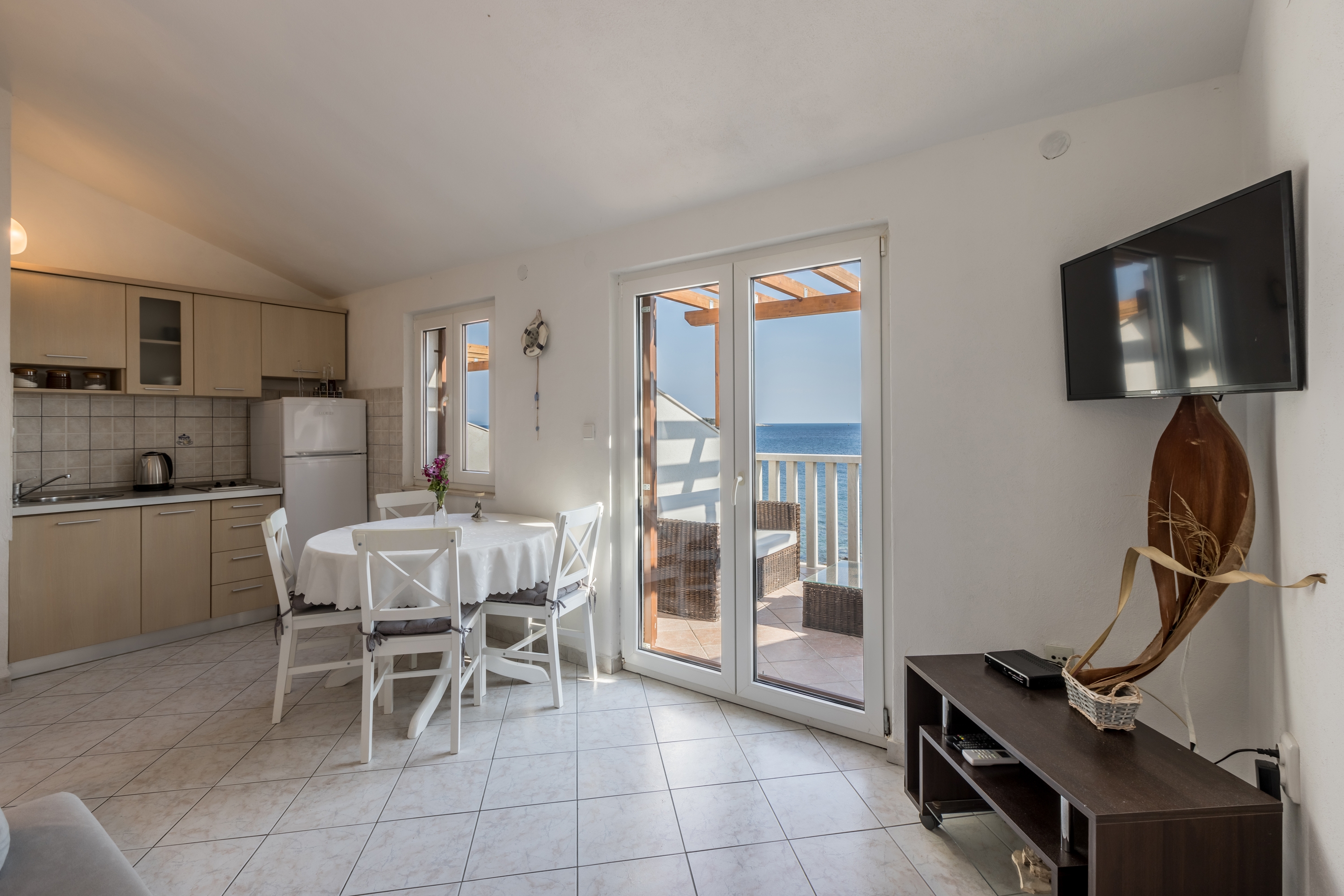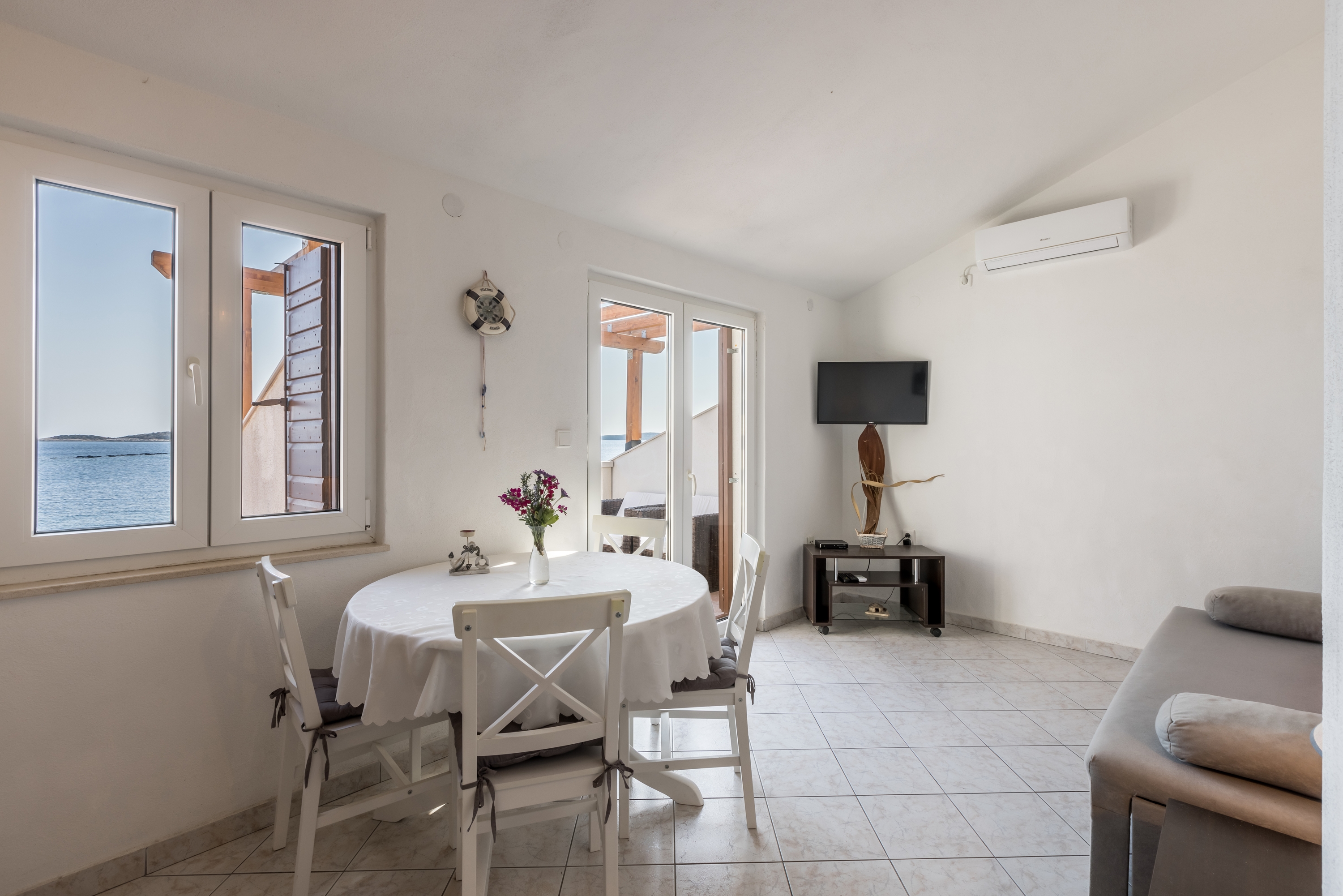 Apartment can accommodate 3 guests. Beds are situated in 1 sleeping rooms, but also in the living room, within 30m2. Guests can use a private terrace to enjoy the warm summer evenings. The apartment offers the sea view. This accommodation unit welcomes pets at no additional costs. INCLUDED IN THE PRICE: tourist tax, final cleaning, air-conditioning, parking, internet, laundry, boat mooring, pets, baby cot, iron, ironing board, hairdryer. OBLIGATORY ADDITIONAL COSTS: short stay fee (surcharge depending on a number of booked nights: 30% - 1, 20% - 2, 10% - 3). The availability of additional services for your chosen dates of stay, as well as their prices (if none are listed) must be checked ahead of time. Any additional services not shown in the price calculation are payable directly to the property owner and only if used by the visitor. Discounts to the base price: free day 14=13 (for reservations of 14 or more days you get one free day for the stay until 31122026).