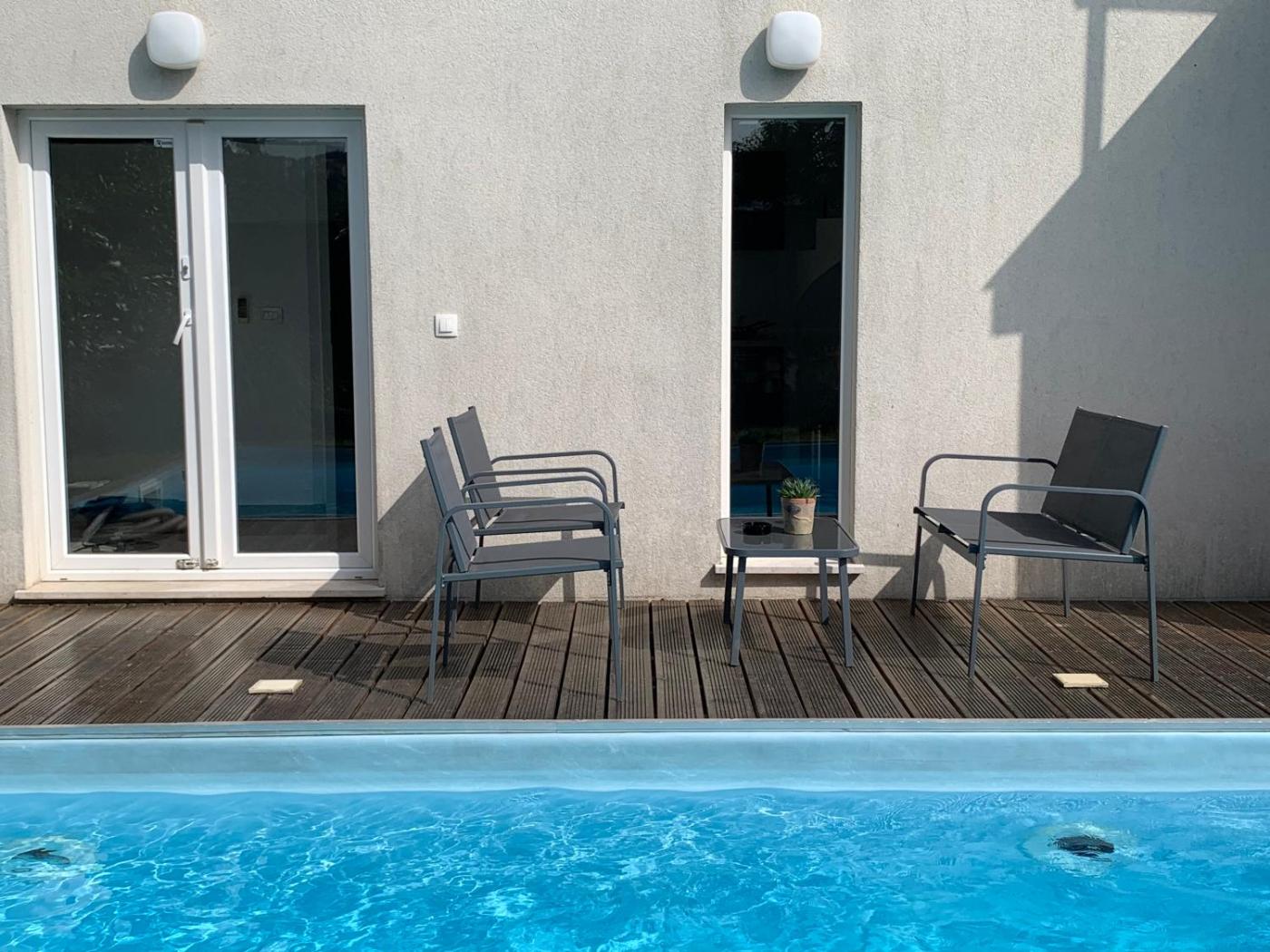 The villa conveniently has an outdoor pool.