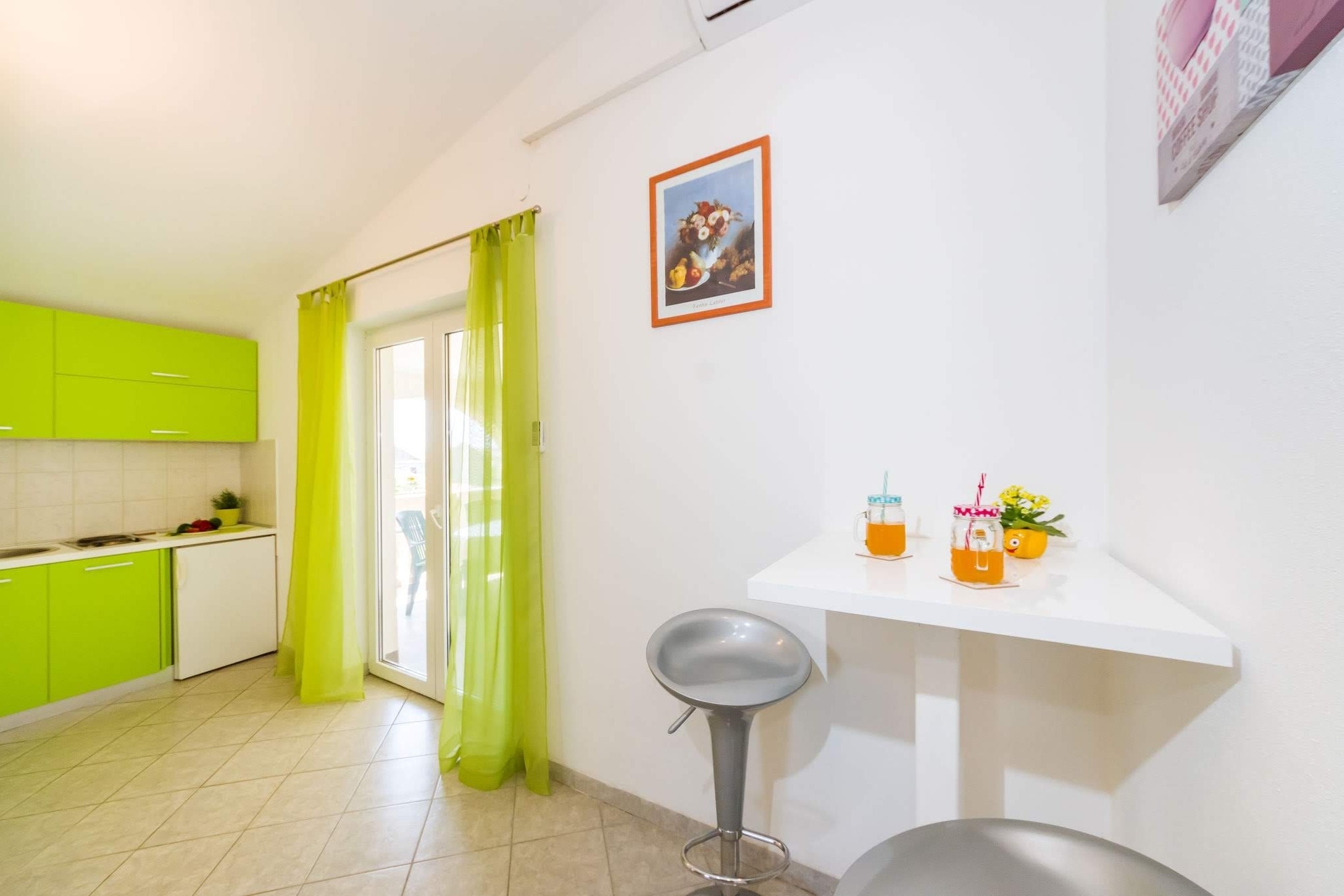 Apartment can accommodate 3 guests. Beds are situated in 1 sleeping rooms, within 22m2. Guests can use a private terrace to enjoy the warm summer evenings. Food can be prepared using barbecue which is shared with other guests too. This accommodation unit welcomes pets at an additional charge. INCLUDED IN THE PRICE: tourist tax, final cleaning, air-conditioning, parking, internet, additional bed, iron, ironing board, hairdryer. OPTIONAL ADDITIONAL COSTS: laundry (€10.00 washing), pets (€7.00 per night). The availability of additional services for your chosen dates of stay, as well as their prices (if none are listed) must be checked ahead of time. Any additional services not shown in the price calculation are payable directly to the property owner and only if used by the visitor. Discounts to the base price: free day 14=13 (for reservations of 14 or more days you get one free day for the stay until 31122026).