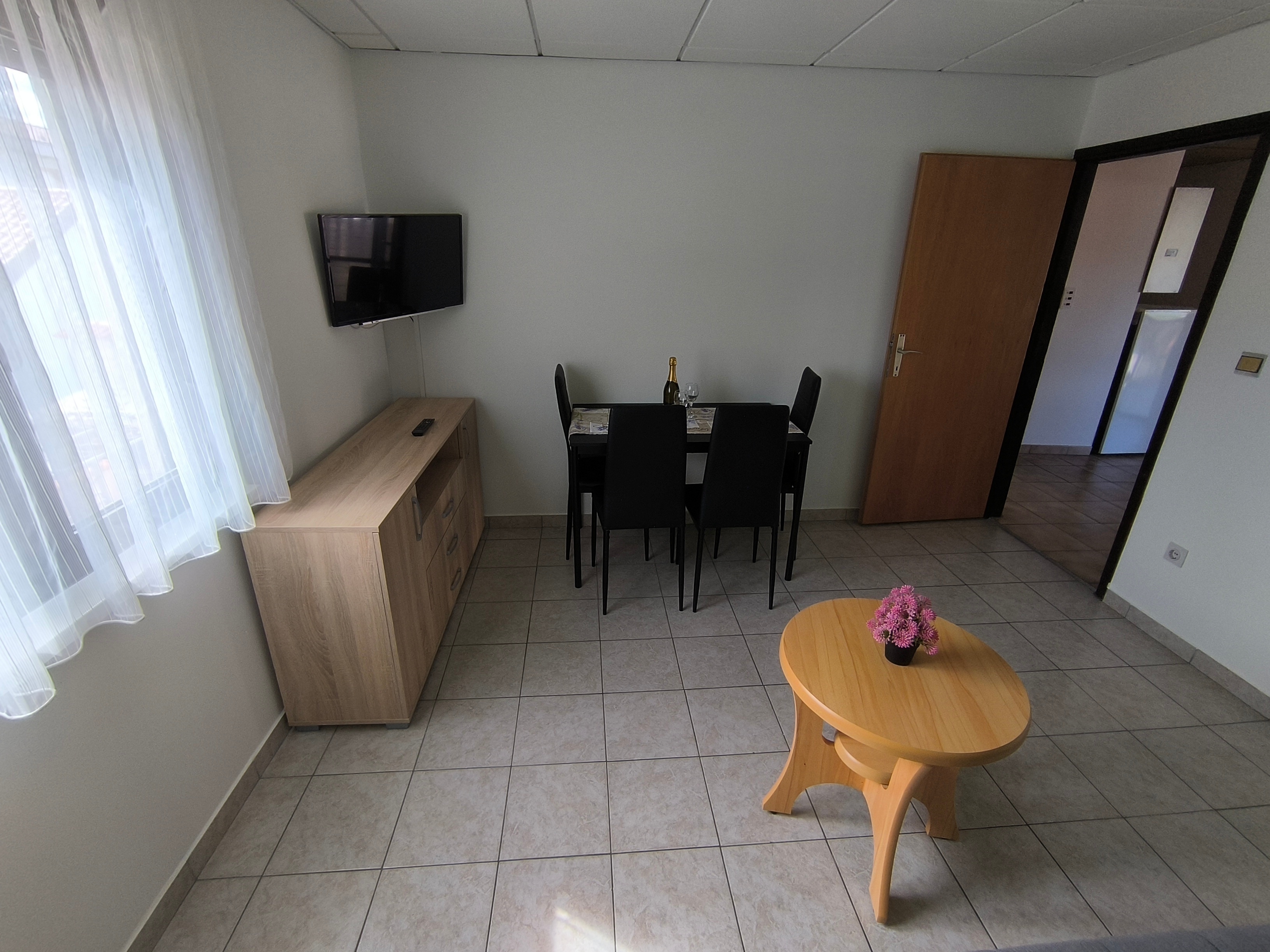 Apartment can accommodate 4 guests. Beds are situated in 2 sleeping rooms, within 50m2. Guests can use a private terrace to enjoy the warm summer evenings. Food can be prepared using barbecue which is shared with other guests too. Shared pool is on disposal during stay. This accommodation unit welcomes pets at an additional charge. INCLUDED IN THE PRICE: tourist tax, final cleaning, air-conditioning, pool, parking, internet, baby cot, hairdryer. OPTIONAL ADDITIONAL COSTS: pets (€5.00 per night). The availability of additional services for your chosen dates of stay, as well as their prices (if none are listed) must be checked ahead of time. Any additional services not shown in the price calculation are payable directly to the property owner and only if used by the visitor. Discounts to the base price: free day 21=19 (for reservations of 21 or more days you get 2 free days for the stay until 31122026).