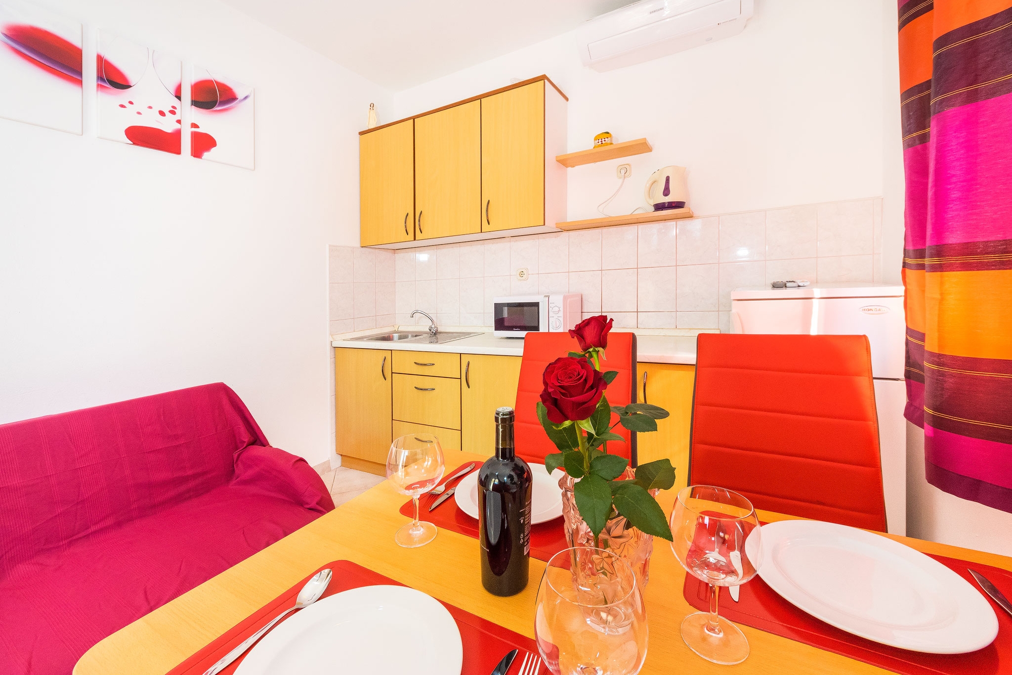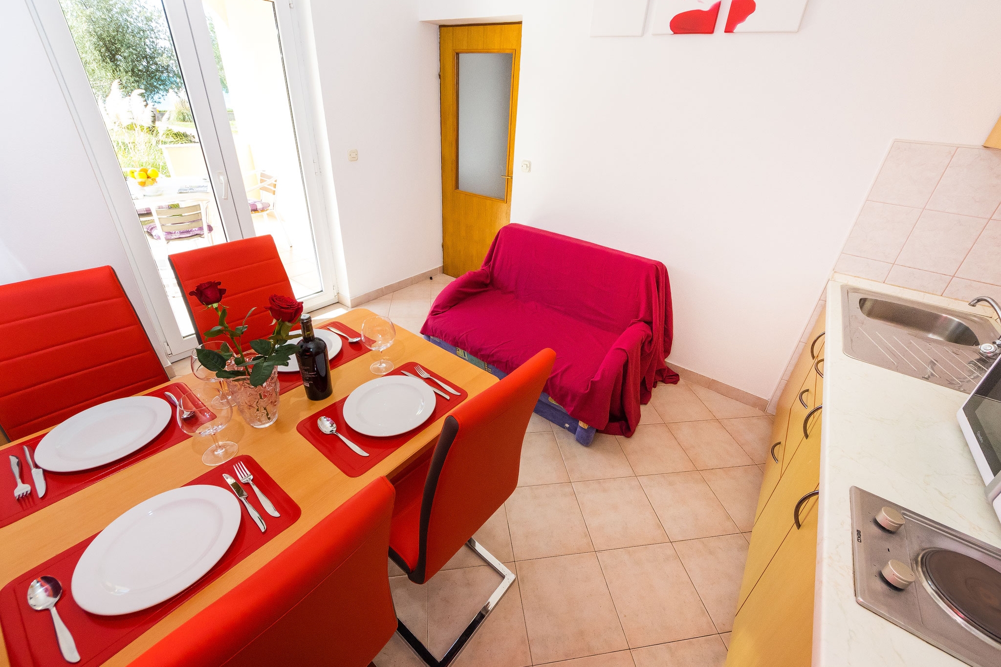 Apartment can accommodate 4 guests. Beds are situated in 2 sleeping rooms, within 37m2. Guests can use a private terrace to enjoy the warm summer evenings. The apartment offers the sea view. Food can be prepared using barbecue which is shared with other guests too. INCLUDED IN THE PRICE: tourist tax, final cleaning, air-conditioning, parking, internet, laundry, baby cot, iron, ironing board, hairdryer, sunshade, sunchairs. OBLIGATORY ADDITIONAL COSTS: short stay fee (surcharge depending on a number of booked nights: 30% - 1, 20% - 2, 10% - 3). OPTIONAL ADDITIONAL COSTS: additional bed (€8.00 per night). The availability of additional services for your chosen dates of stay, as well as their prices (if none are listed) must be checked ahead of time. Any additional services not shown in the price calculation are payable directly to the property owner and only if used by the visitor.